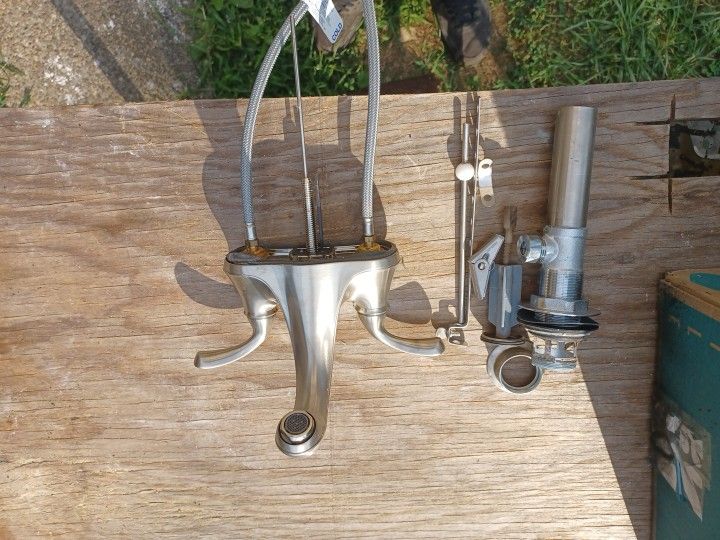 Used but still works fine. Just wanted new faucets. Have 2 of them if interested in both I will make a package deal. Comes with all hardware.