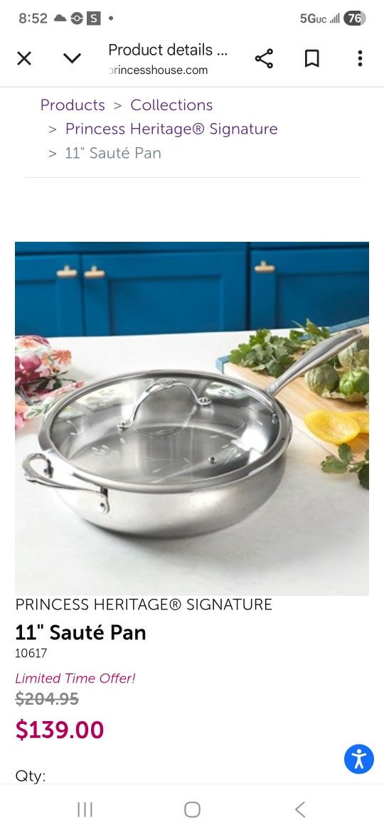 NEW. Princess House Princess HeritageTri Ply Stainless Steel 11" Skillet. Asking $120. PRICE IS FIRM. Nuevo. Sarten de 11" de Acero Inoxidable Tri Ply Princess Heritage. $120. PRECIO FIRME.
