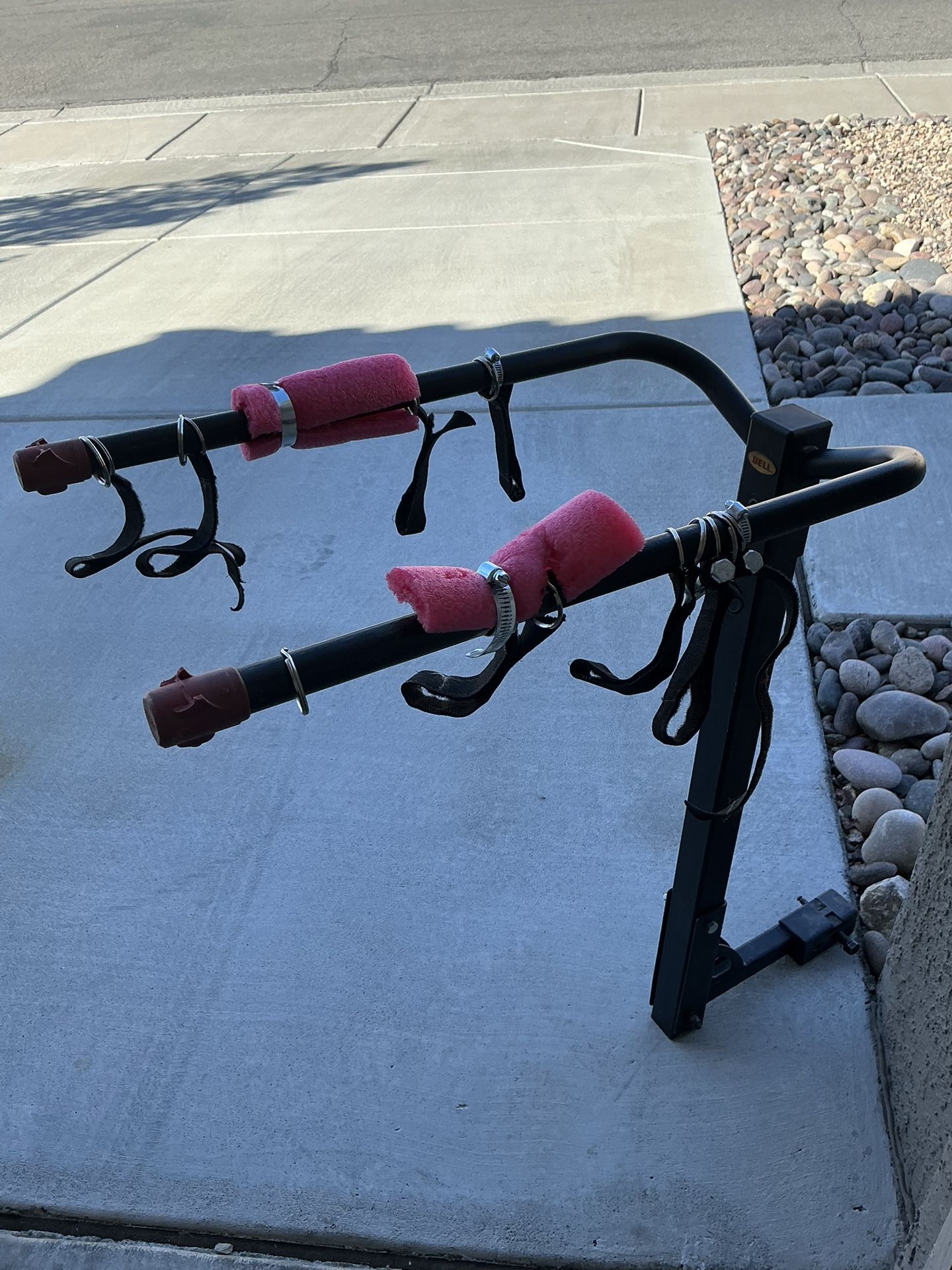 Item can be used with either 2 inch hitch or 1 1/4 inch hitch. Able to hold four bikes. All parts included.
