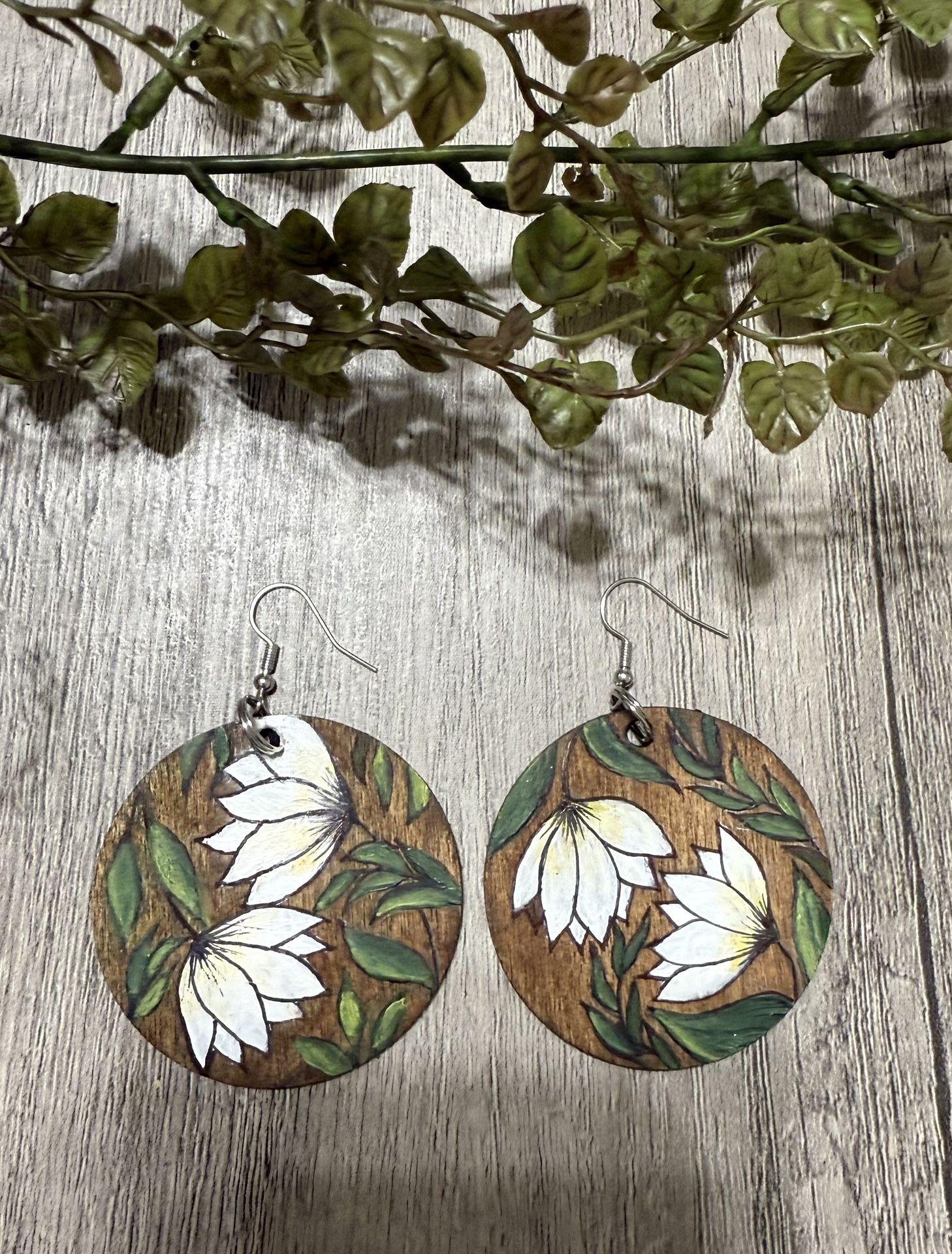 Hand-Painted Floral Wood Earrings: Boho Statement Jewelry