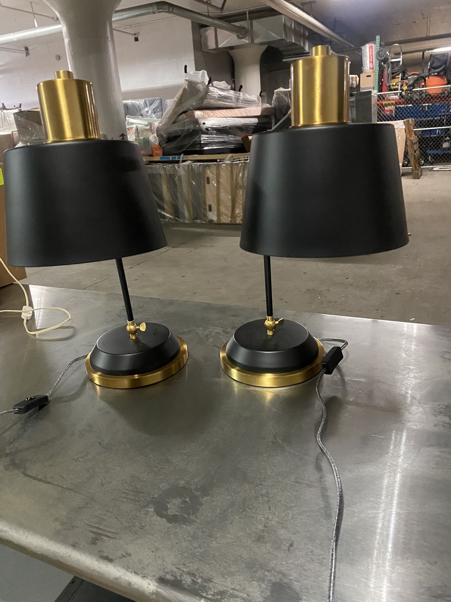 Never used - In perfect condition Set of two black and gold lamps.