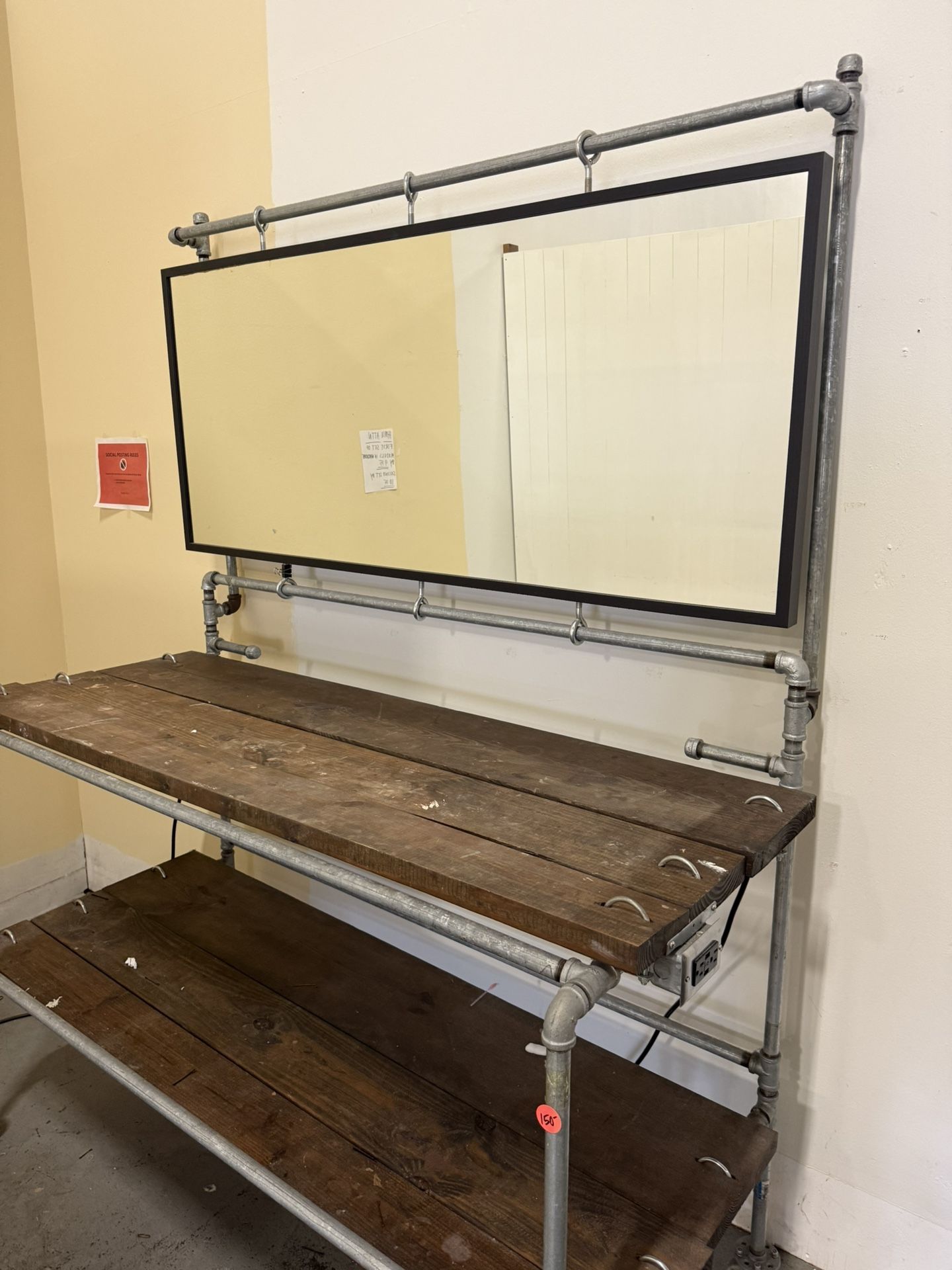 Large wood area lots of room comes with power outlet large mirror rustic industrial style great condition