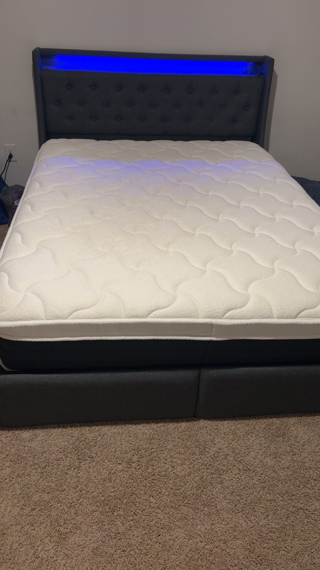 Queen bed and bedframe the bed lights up and have drawers on the side