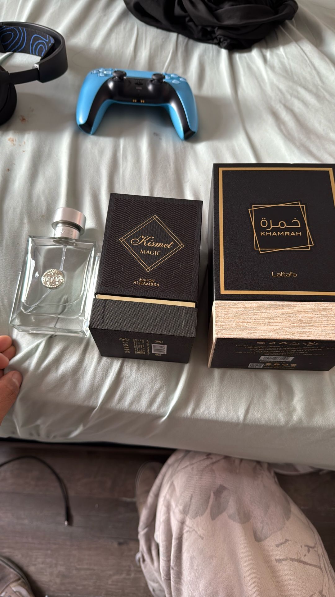 random versace half full kismet magic and khamrah lattafa only sprayed once each basically brand new except for the versace