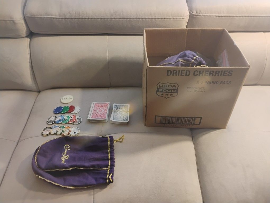 A friend gave them to me as a gift. I don't know how to play them, and it is keeping up space. I have bags full of poker chips and two decks of cards, and one dealer puck. I don't have the brief case for them. Cash only