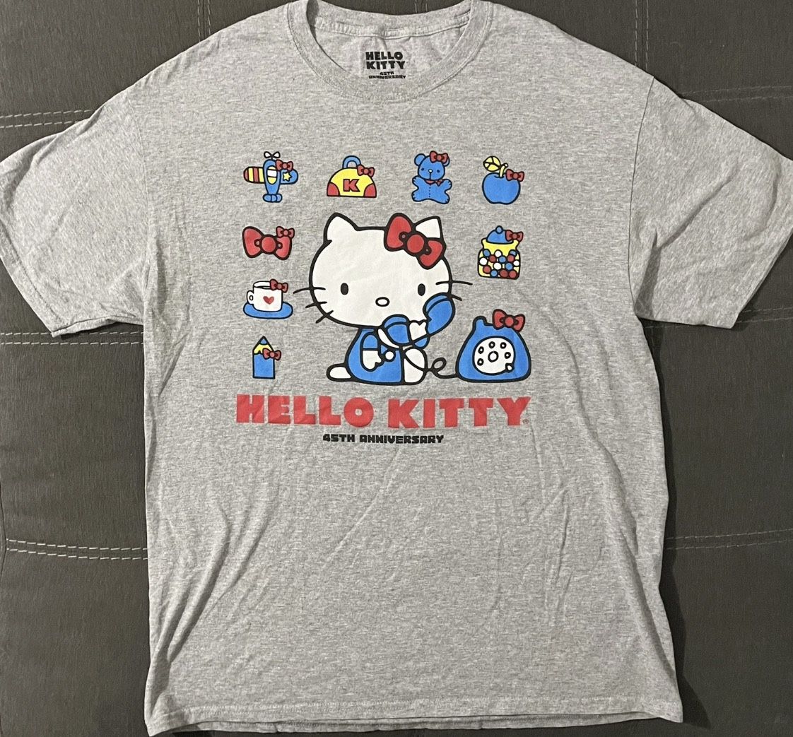 Sanrio x Loot Crate Hello Kitty 45th Anniversary T-Shirt Size Large L Grey Gray