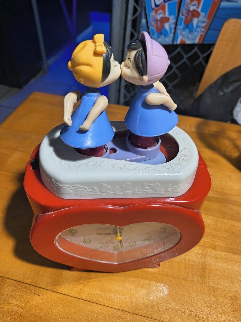 Battery operated Set the alarm and both people start kissing and pulling away and going back to kiss one another this is an absolute vintage 1980s very rare and now you can own it. $75