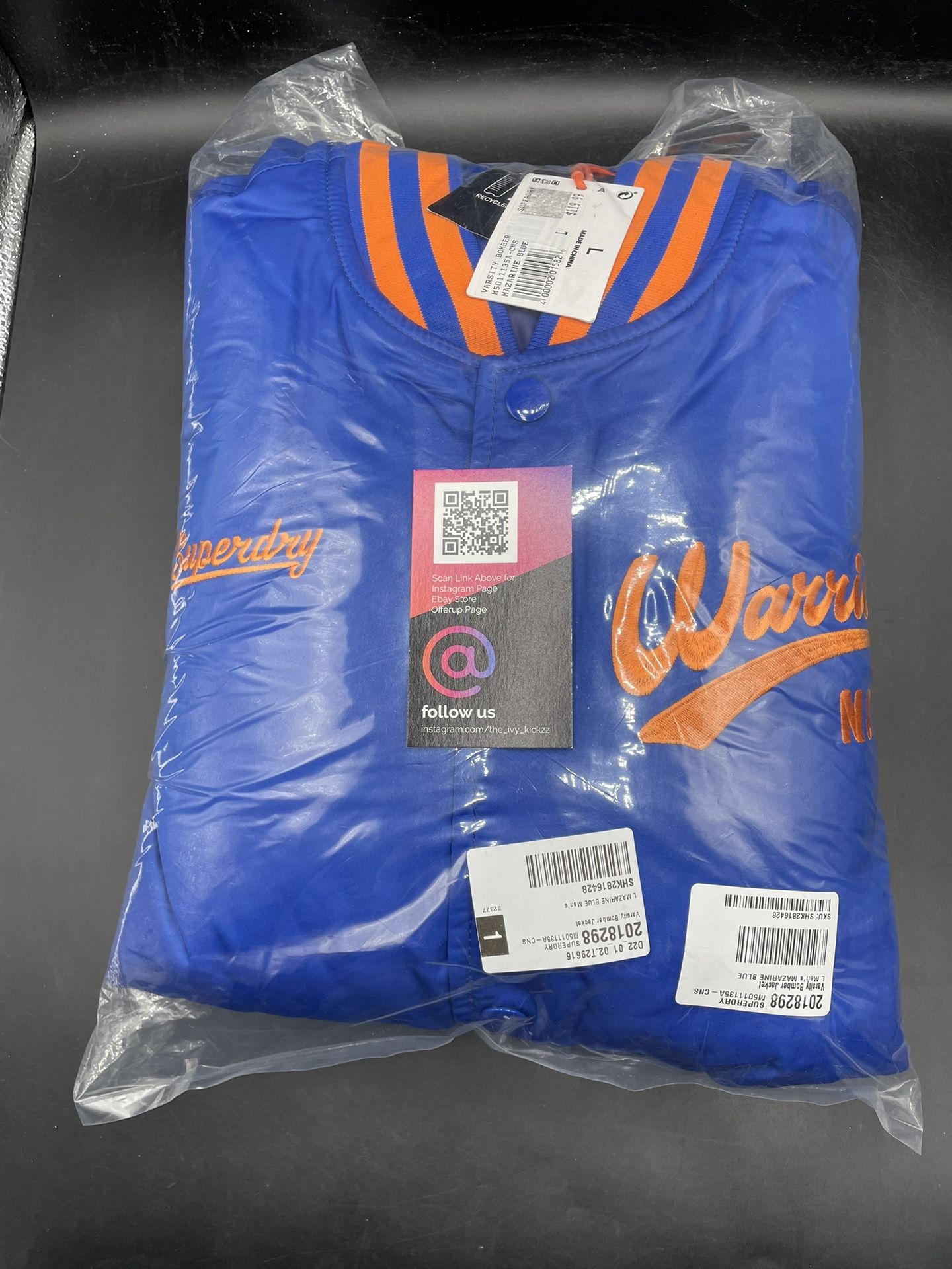 New Superdry Mens Size Large Varsity Bomber Jacket Blue And Orange