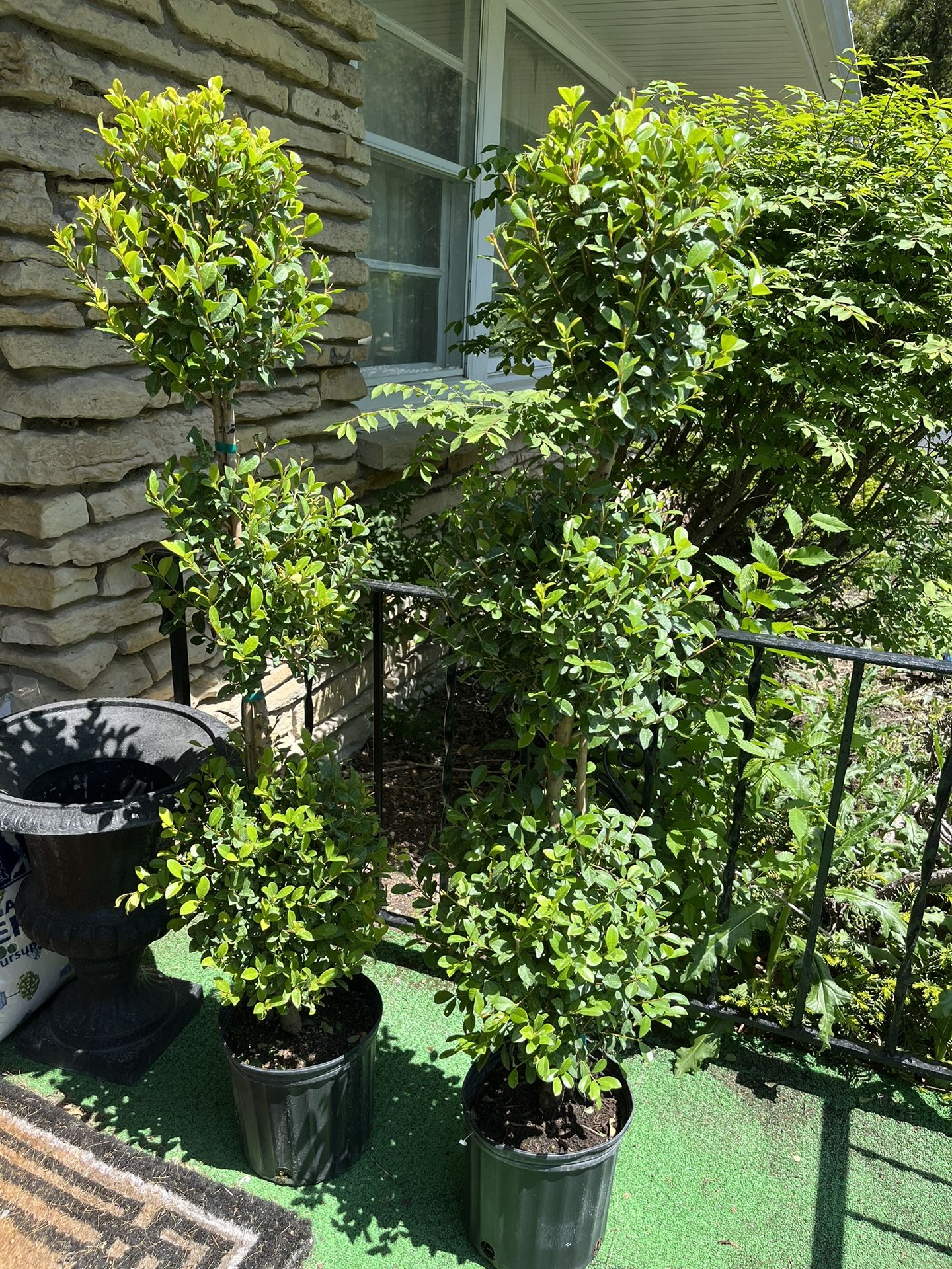 two matching living topiary trees