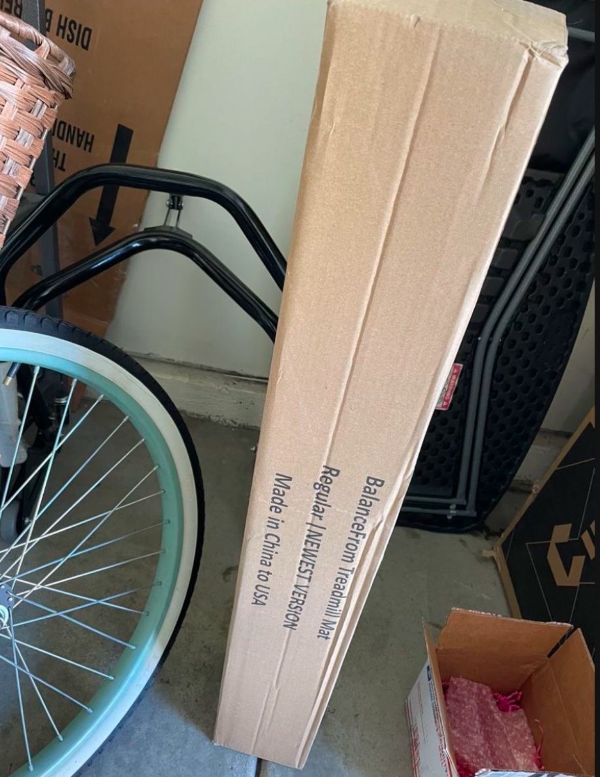 Good for exercise bikes, treadmills, other equipment. Good grip. Protect floors. I use mine as an outdoor yoga mat. Found on Amazon. Brand new/never opened