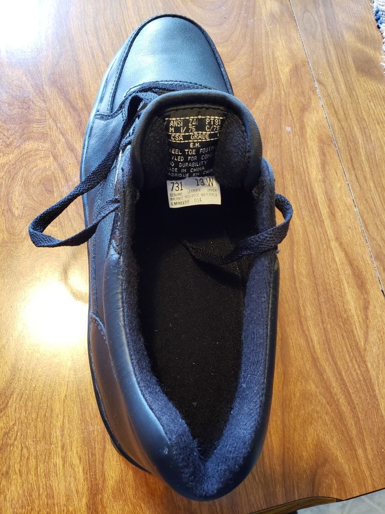 Black Sneakers With Steel Toes. Never Worn, Still in Box. Has slight imperfections on Tongues.