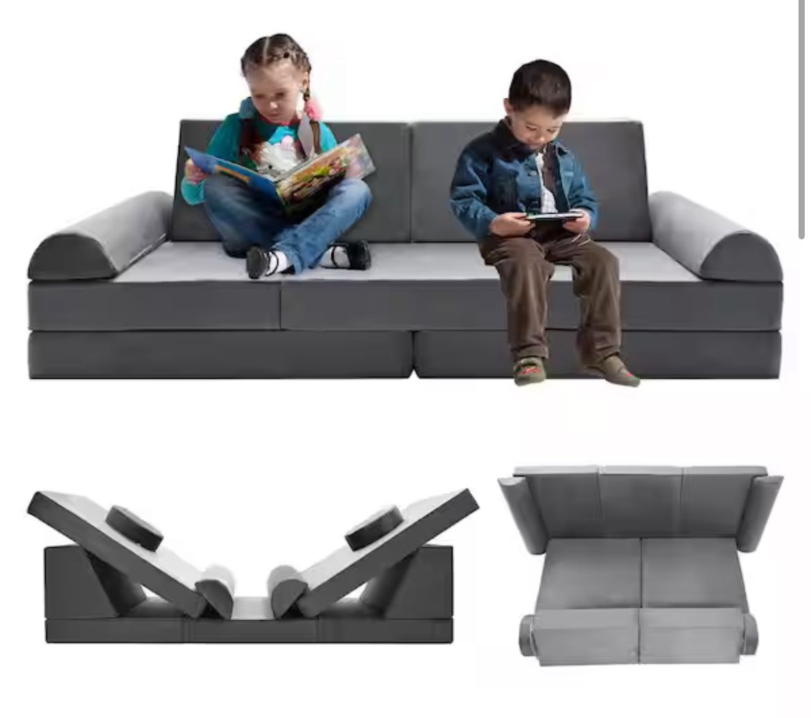 New, 71 in. L Kids Couch Sofa 11-Piece Modular Toddler Couch for Playroom Fold Out Couch Set for Kids, Gray
