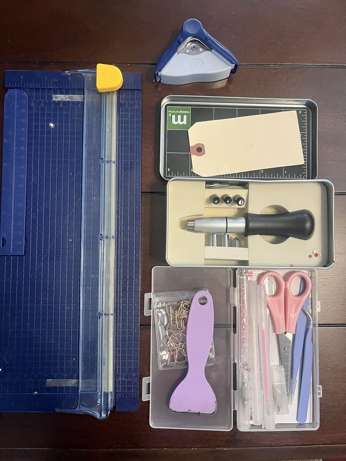 Creative memories paper cutter/slicer, making memories paper or ribbon hole punch kit, photo or paper corner cutter and mini craft tools set.