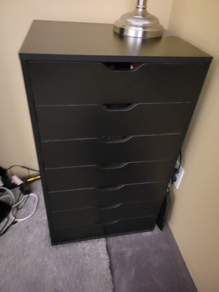 Black wood storage cabinet in great shape, 34h, 18l, 15w