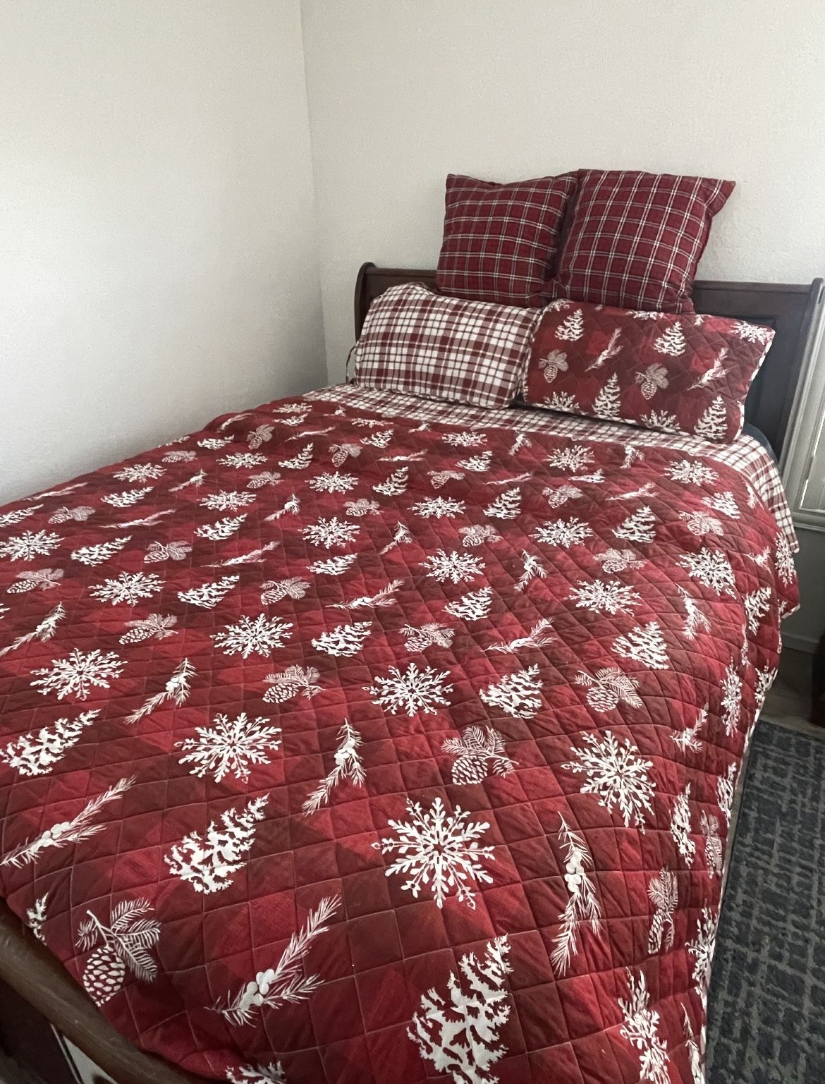 QN 5 piece Christmas style quilt set reversible