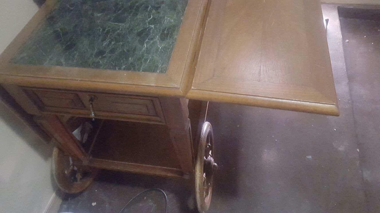 Serving table with to 2 drop leaf . Granite top