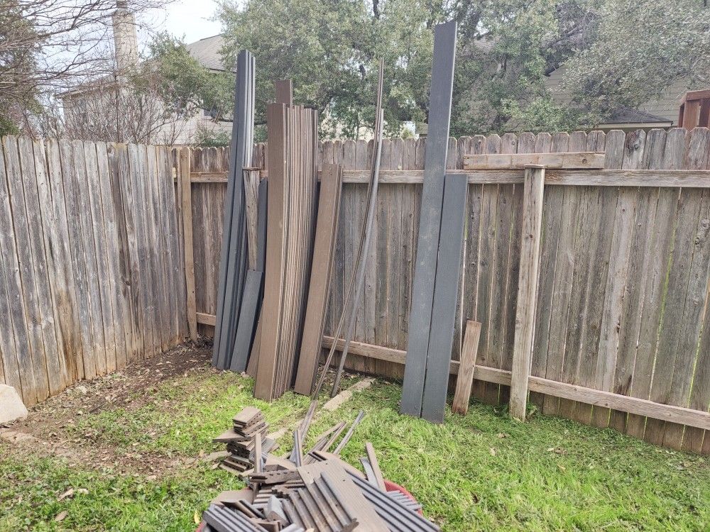 Must pick up near 1604 and Braun. Left over material from rebuilding my deck. Great for a small patio or other projects. Buy at a discounted price and pay no taxes either! ;-) Available: Brown 14 pieces 1"x6"x6.5' - $200 Brown screws 2 boxes - $50 Gray 1piece 1"x6"x8' - $15 Gray 1 piece 1"x6"x8' - $5 Gray 6 pieces 1"x2.5"x8' - $10 Gray screws - $5 64 Fasteners - $20 Take everything for $280 or buy what you need for the price listed. Any or all of the pieces in the wheel barrel are FREE but you have to buy something!!! Please check out my other items. Thank You