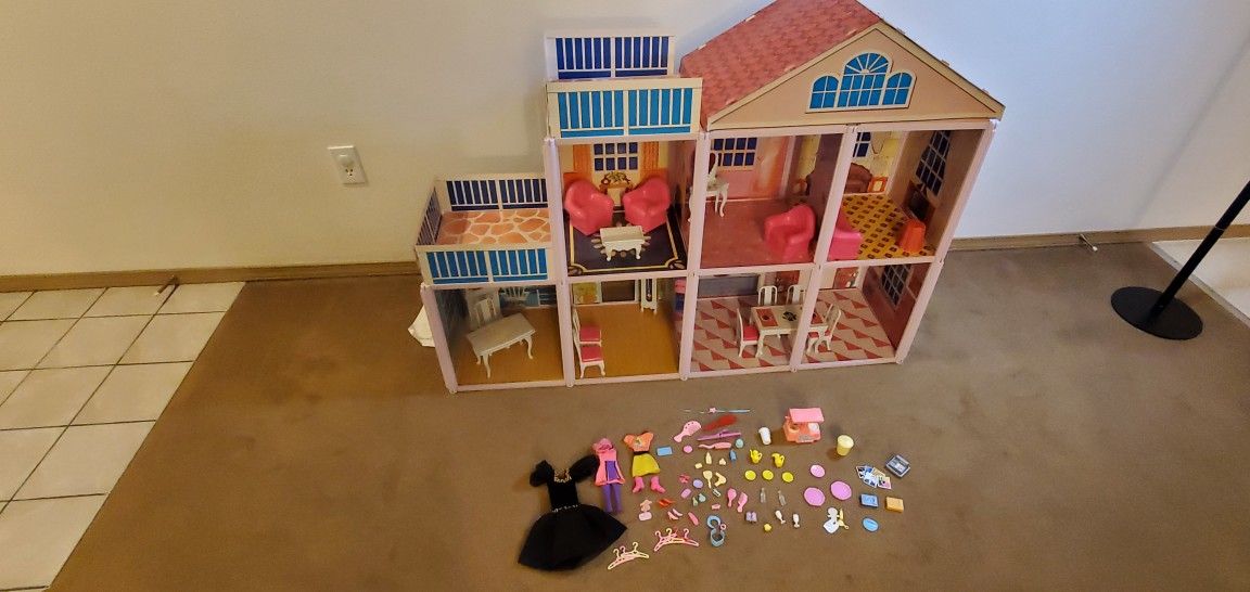 Vintage Blue Box Barbie/Doll House, Furniture & Accessories