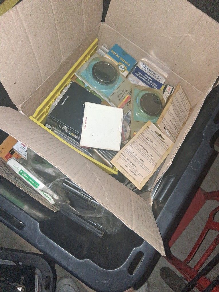 Alot of camera stuff looks like its for older cameras there is lenses , cameras, cases and alot of accessories 250 obo