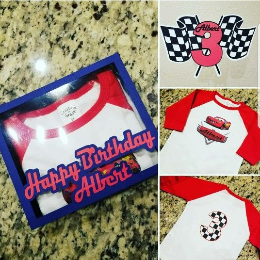 Custom raglan shirt, cake topper, and gift box