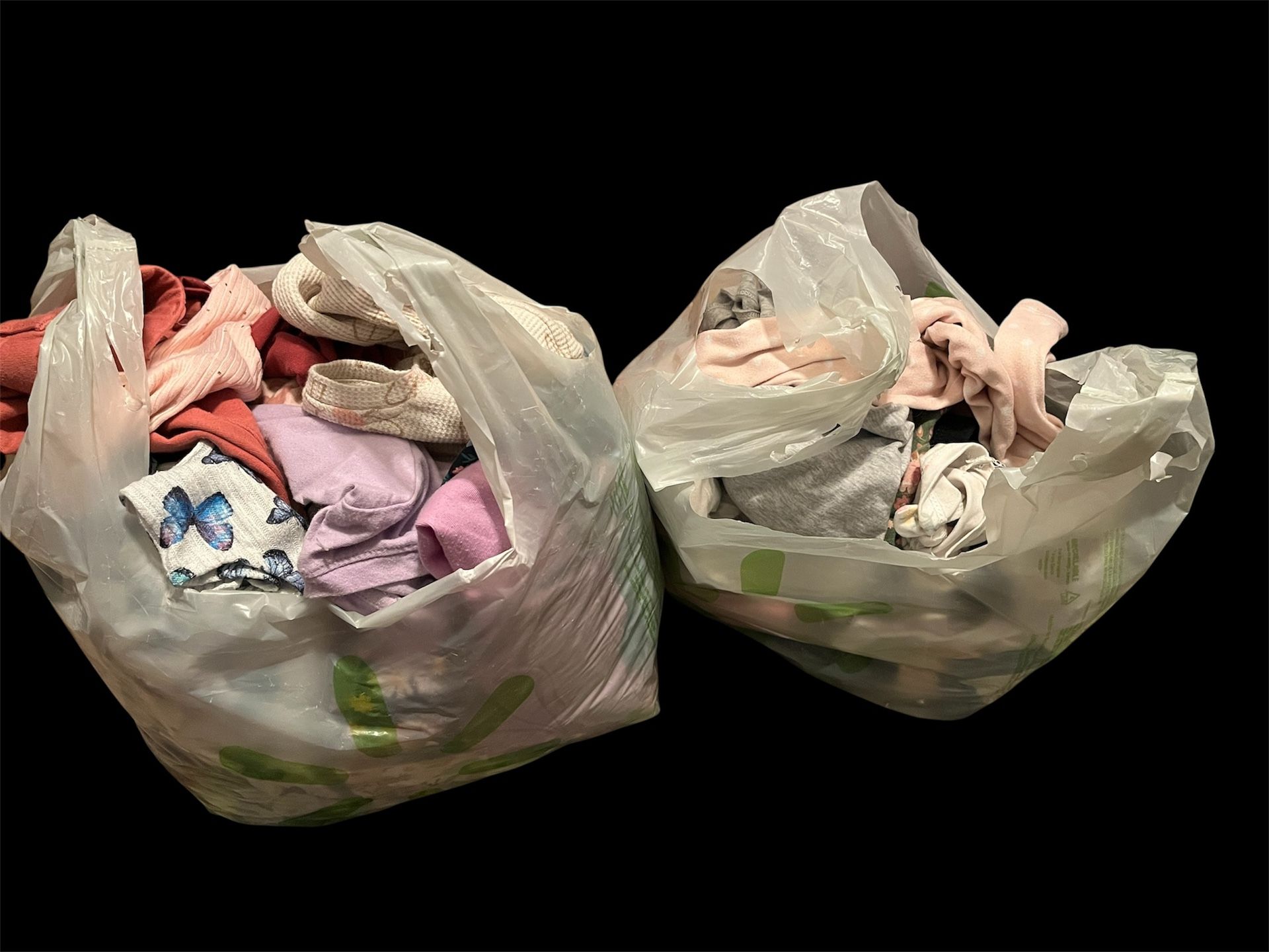 I have a bunch of bags like this with a bunch of girl clothes sizes 3 month-2 years old. Clothes are very cute & in very good condition