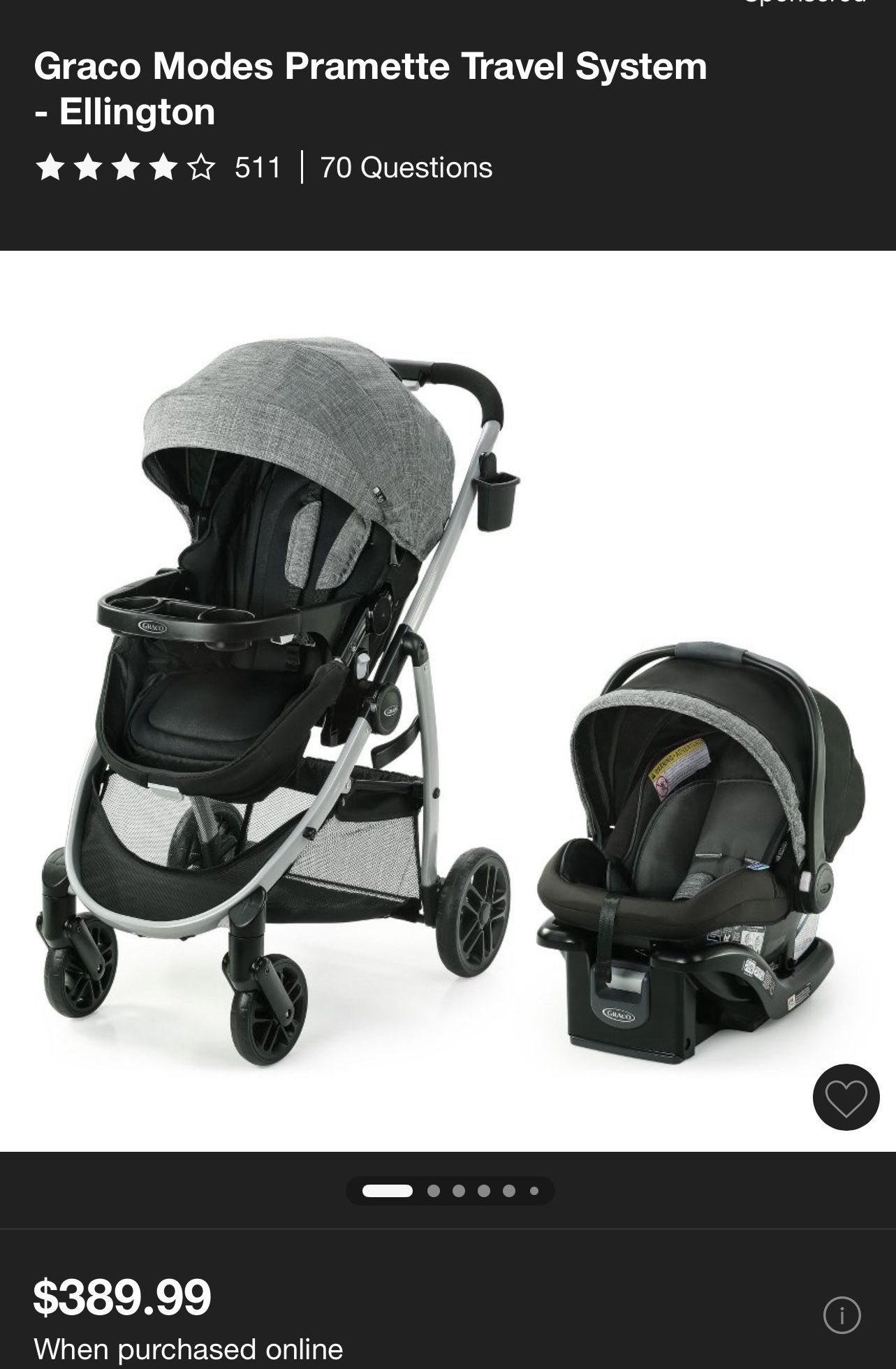 -One hand fold -Includes Child tray and cup Also include phone holder Scroll in infant pramette and toddler stroller Large basket Bought from target Selling only toddler stroller Attached reference picture