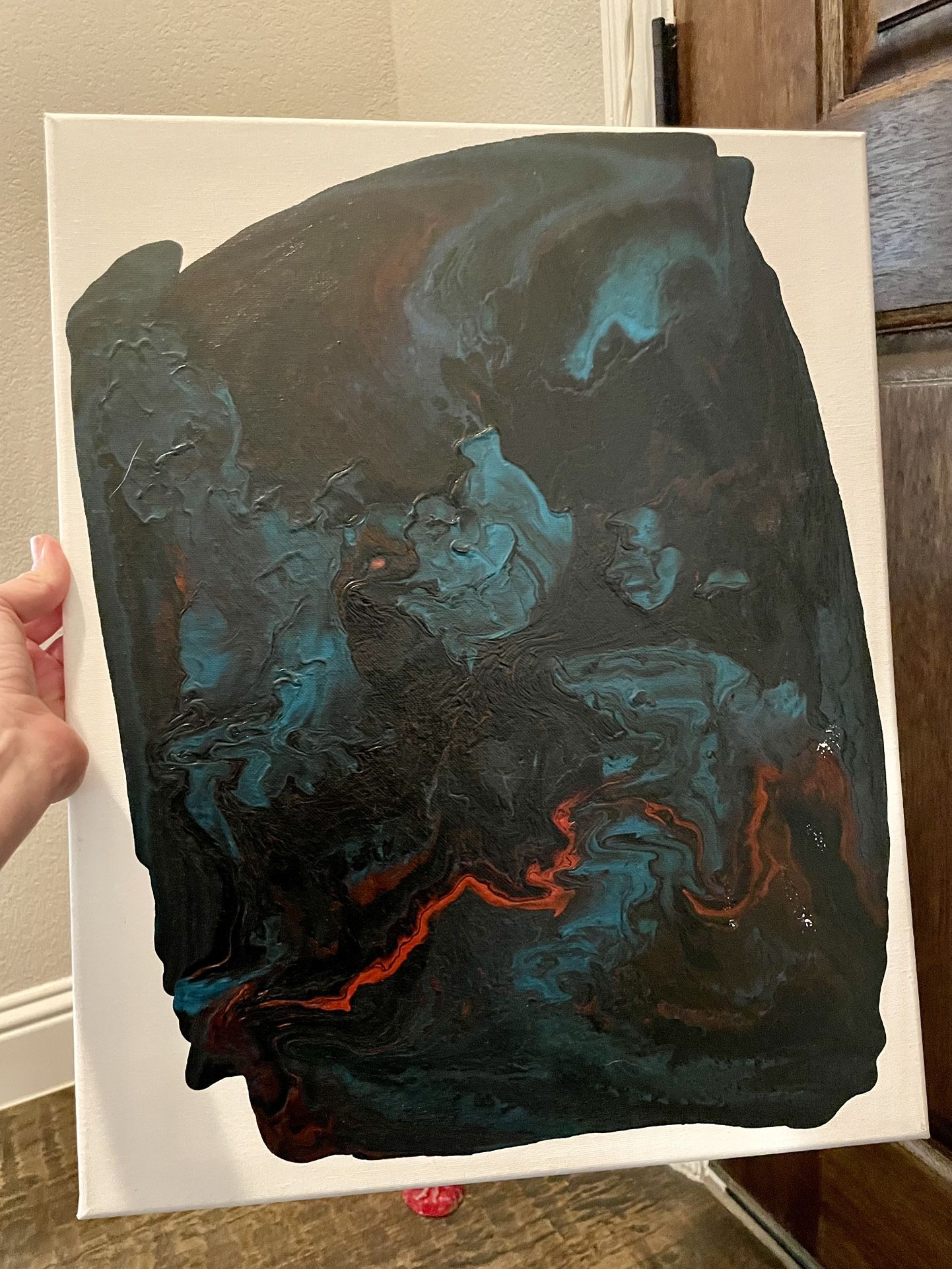 Original by C. Wade. #1 of 1. Colors that pop are black, red, and teal.