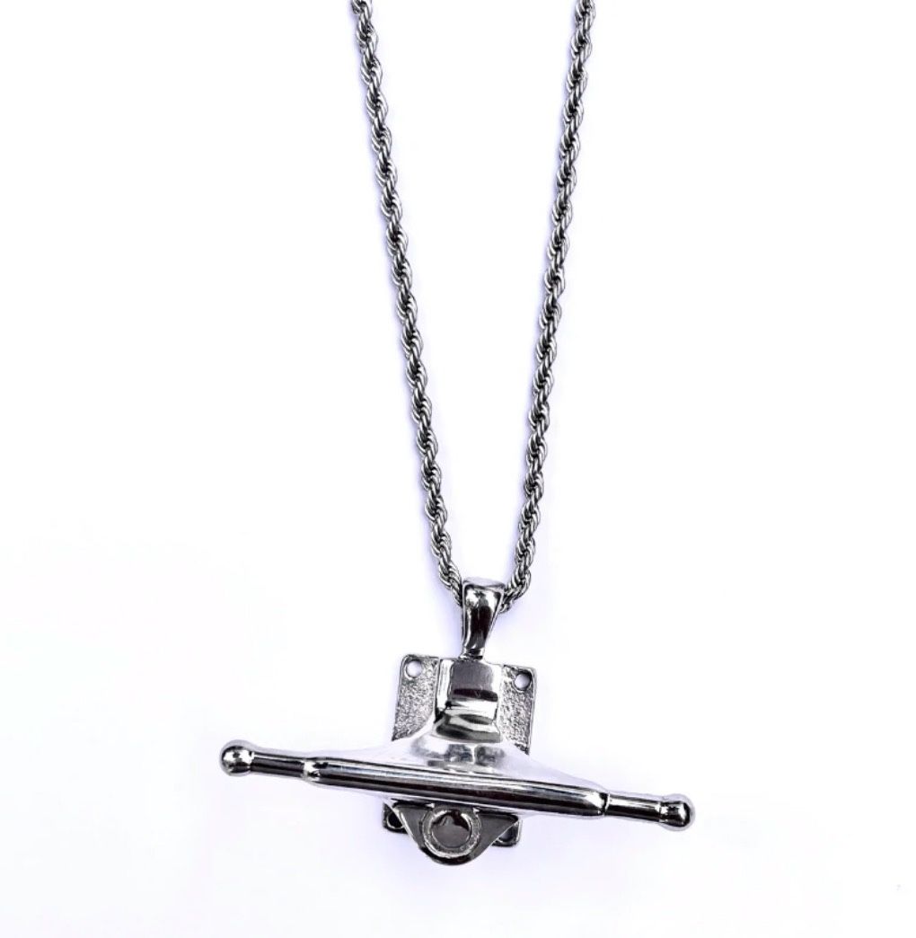 NEW skateboard truck necklace made of stainless steel. Available at https://offerup.com/redirect/?o=RlhQWFMuQ09N