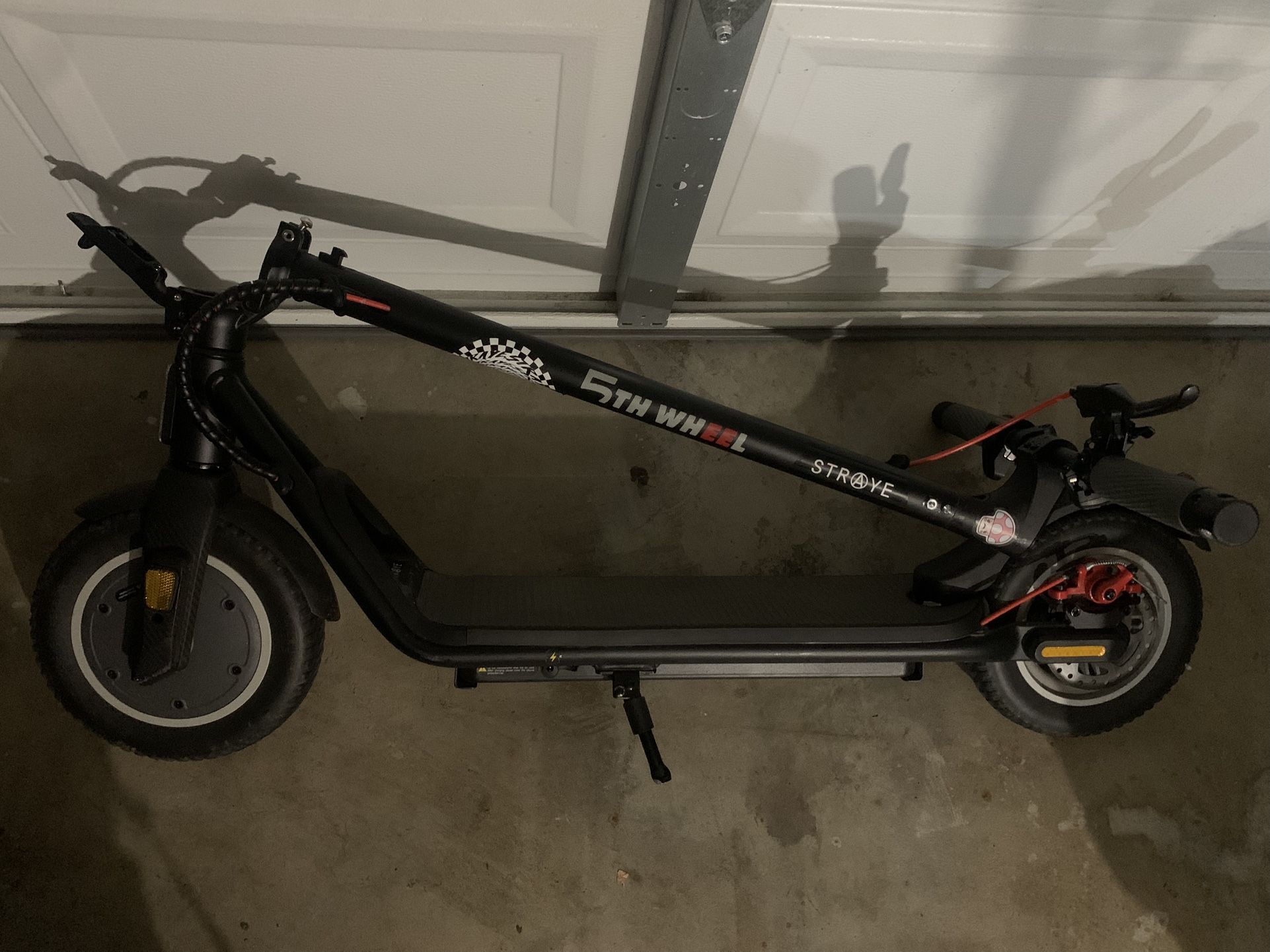 Like new 5th Wheel V20Pro electric Scooter 600W peak, 18mph, 12 mile range, solid 10” tires with lights and turn signals. Scooter is in great condition. Only used a few times. Comes with the original charger and is ready to ride.