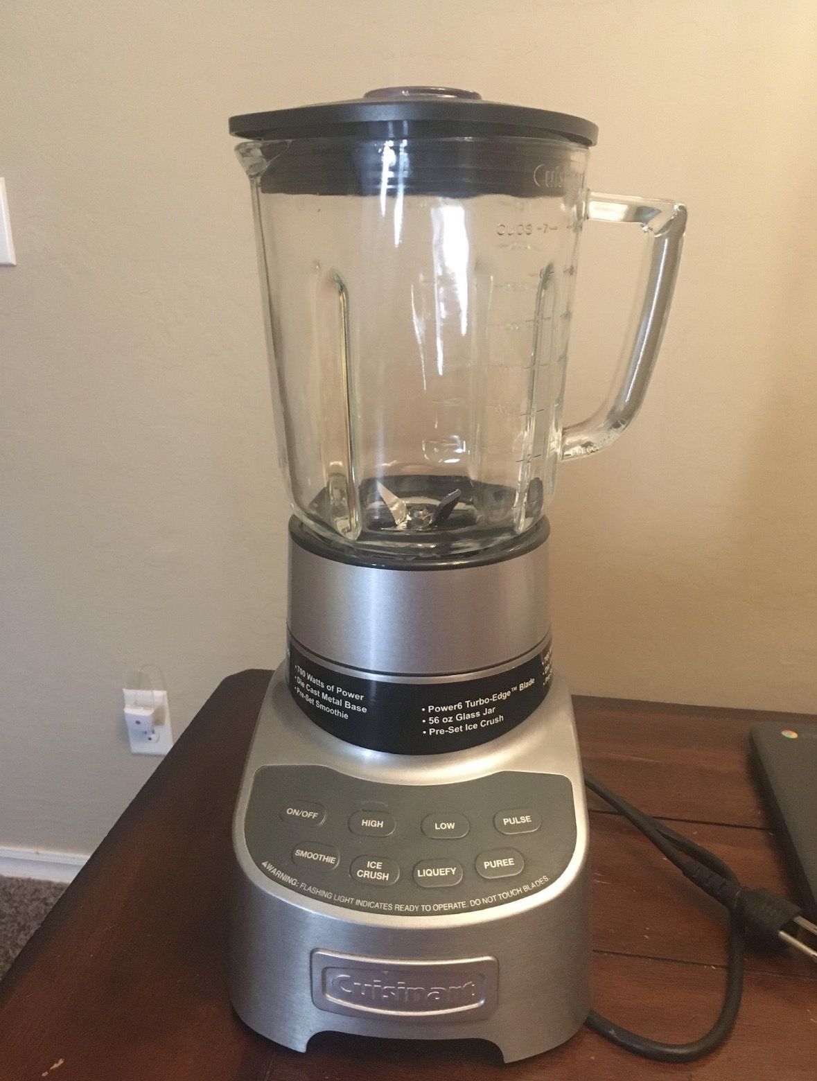 Cuisinart 56oz 7 cup blender. Ice crush, smoothie, liquefy, purée, pulse. Glass jar and metal base with powerful blade .