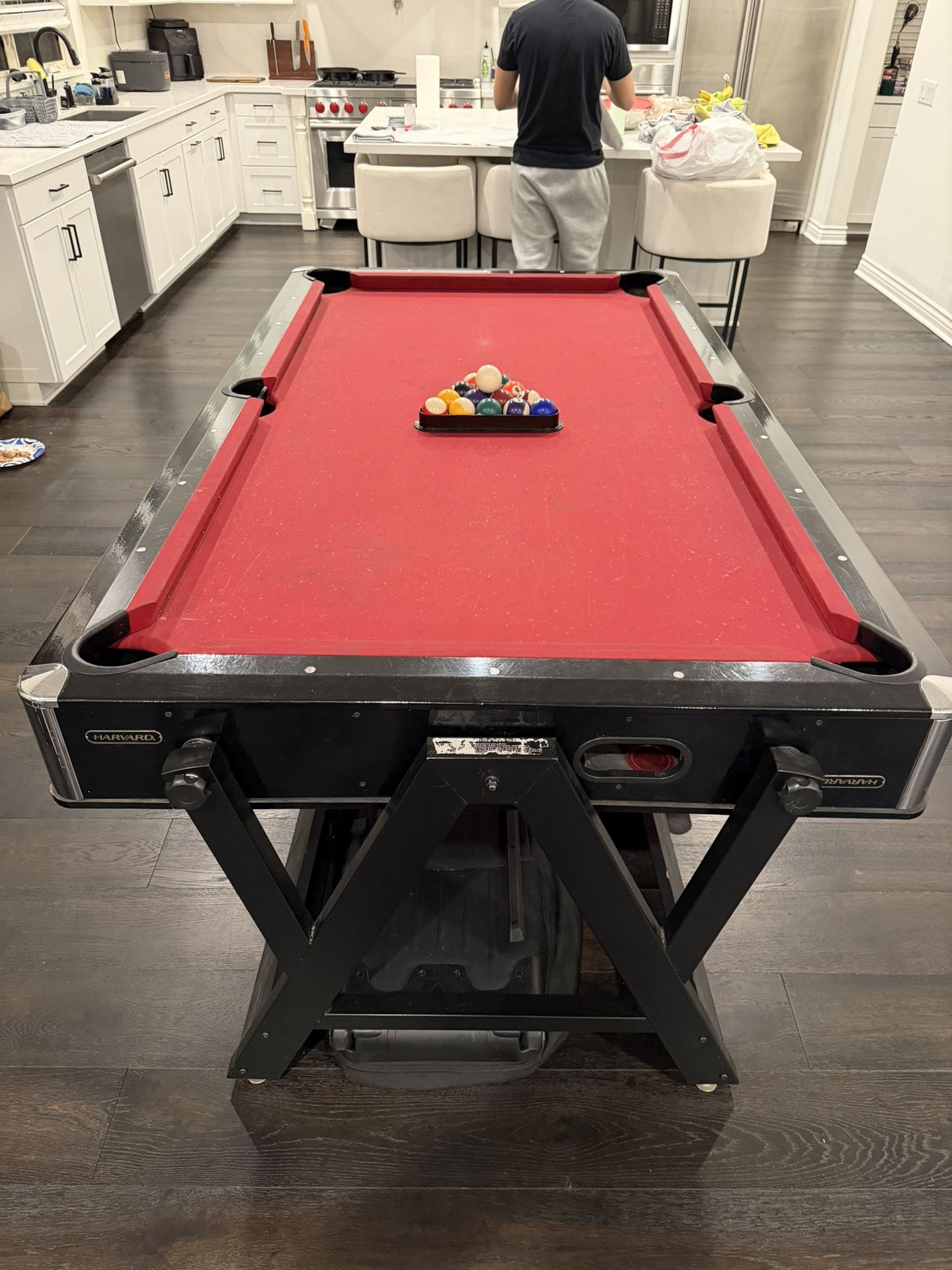 Selling a Harvard multi-game table that converts between pool table and air hockey. ✅ Includes everything needed to play: • Pool table surface • Air hockey surface • Full set of pool balls • 4 pool cue sticks • Pool cue wall stand/rack • Ball rack • 4 air hockey paddles • 3 air hockey pucks Table is in good working condition and perfect for a game room, apartment, or family space. Everything included ready to play immediately. Buyer must arrange pickup (table is heavy). Located in Irvine.