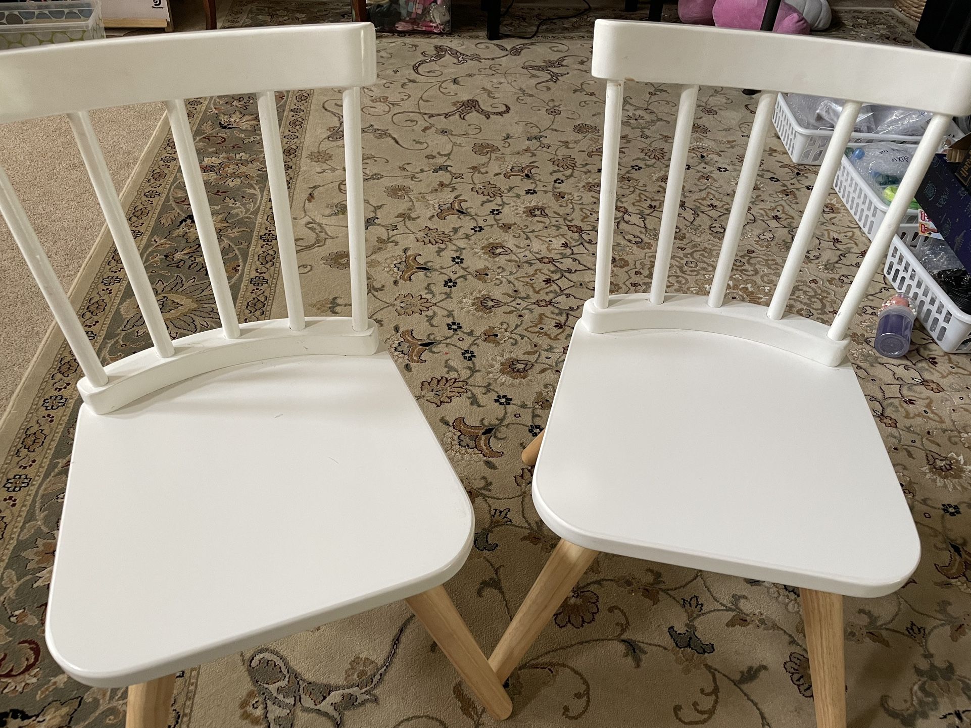 2 Kids White Wood Chairs