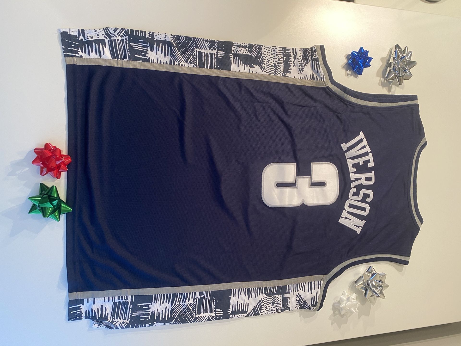 Brand new Allen Iverson jersey sizes medium and large Great Christmas gift. $50.00 cash - serious inquires only please thank you.
