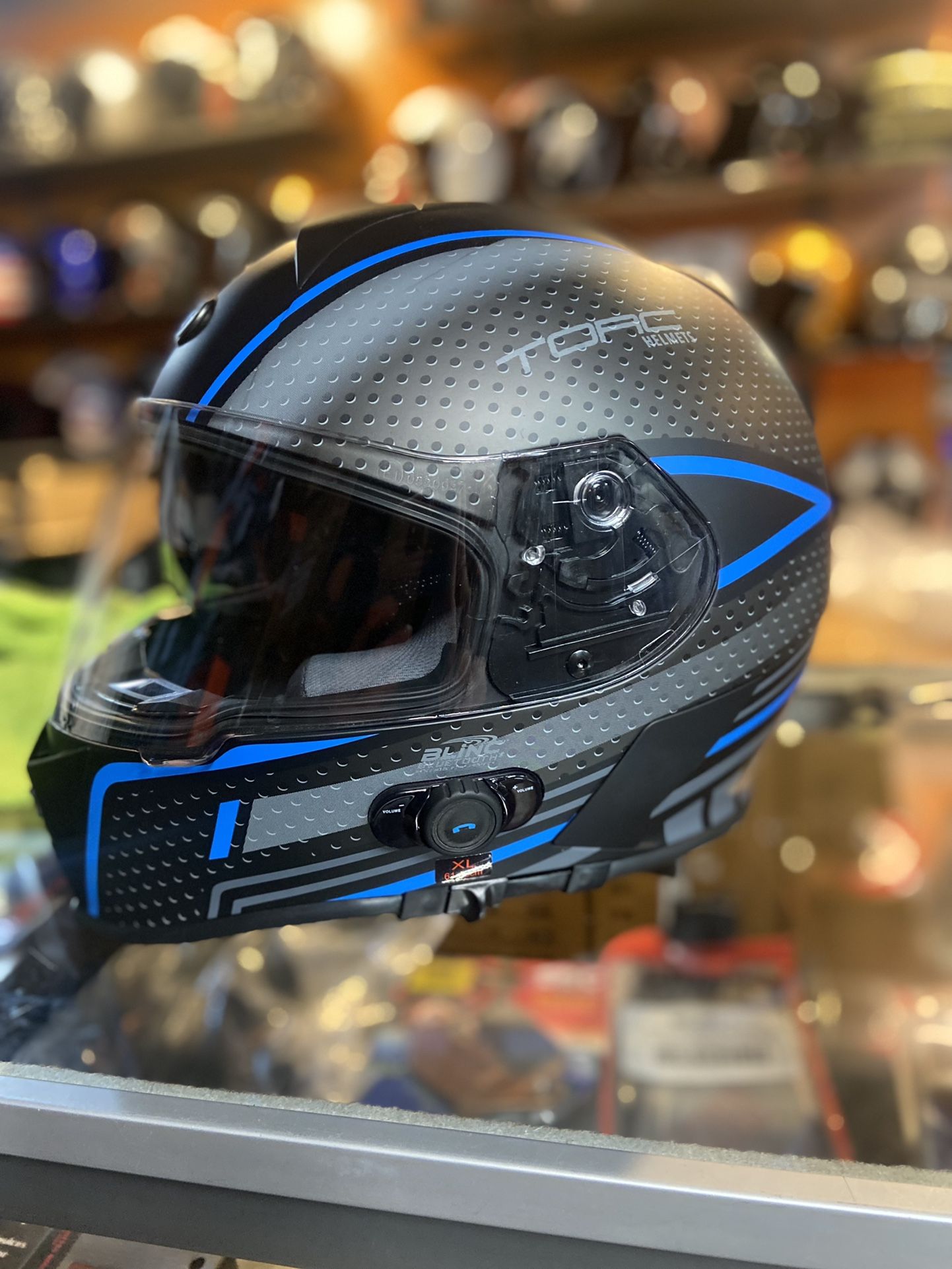 New Matte Black And Blue Dot Bluetooth Motorcycle Helmet $200