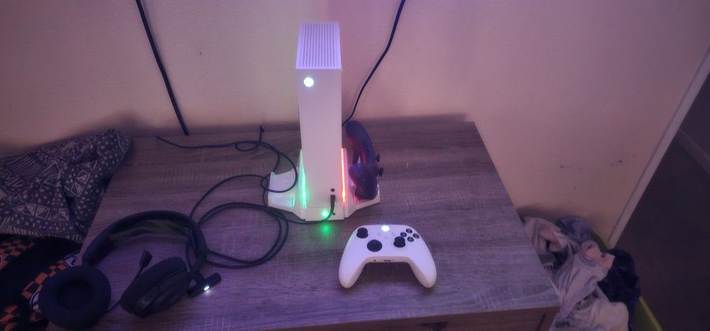 X boxs ss. With 2 control and the power packs with a port for the control. And good head set. Asking 200$