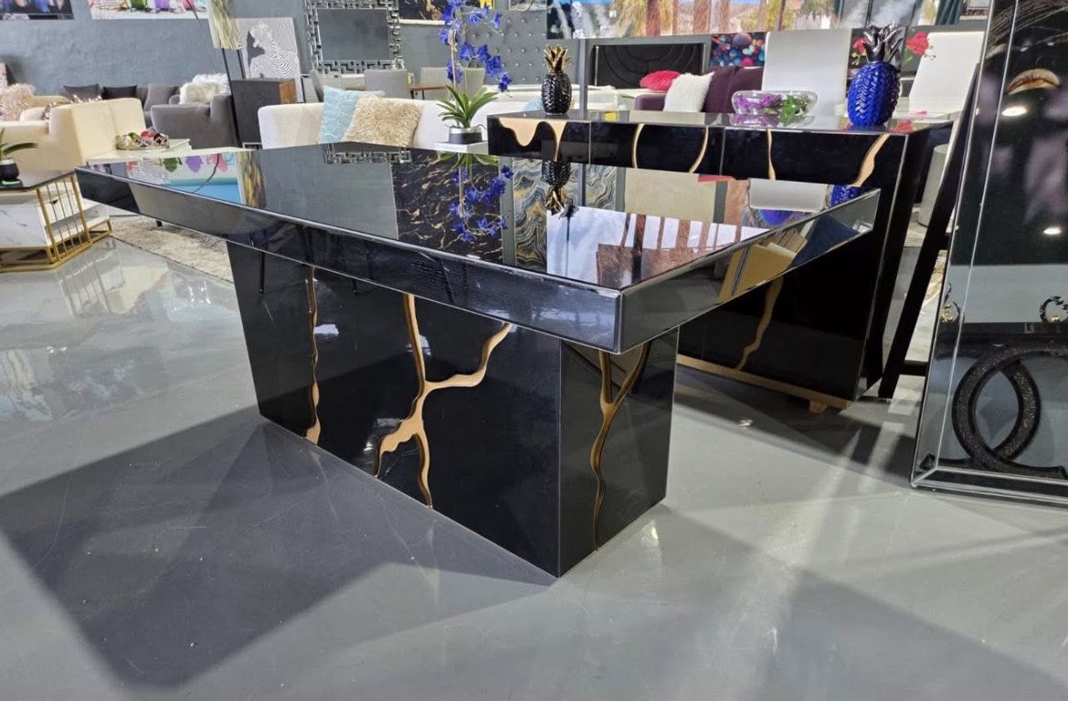 DESIGN DINING TABLE BLACK GLOSSY GOLD 73x38