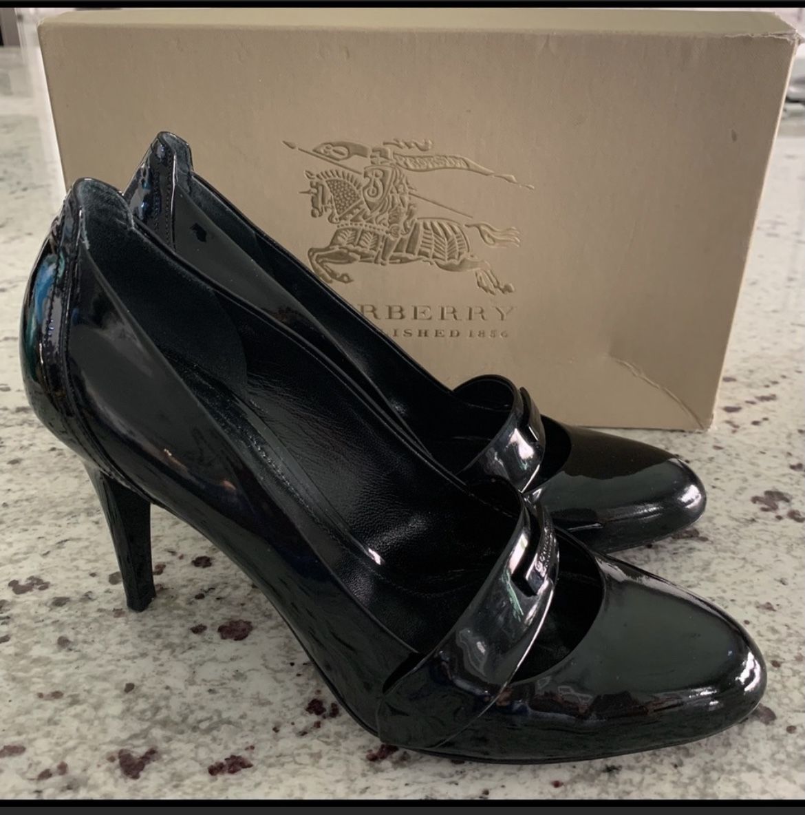 Authentic BURBERRY black patent leather heels. Size 38.5. Beautiful shoes. Have the box. Pre owned