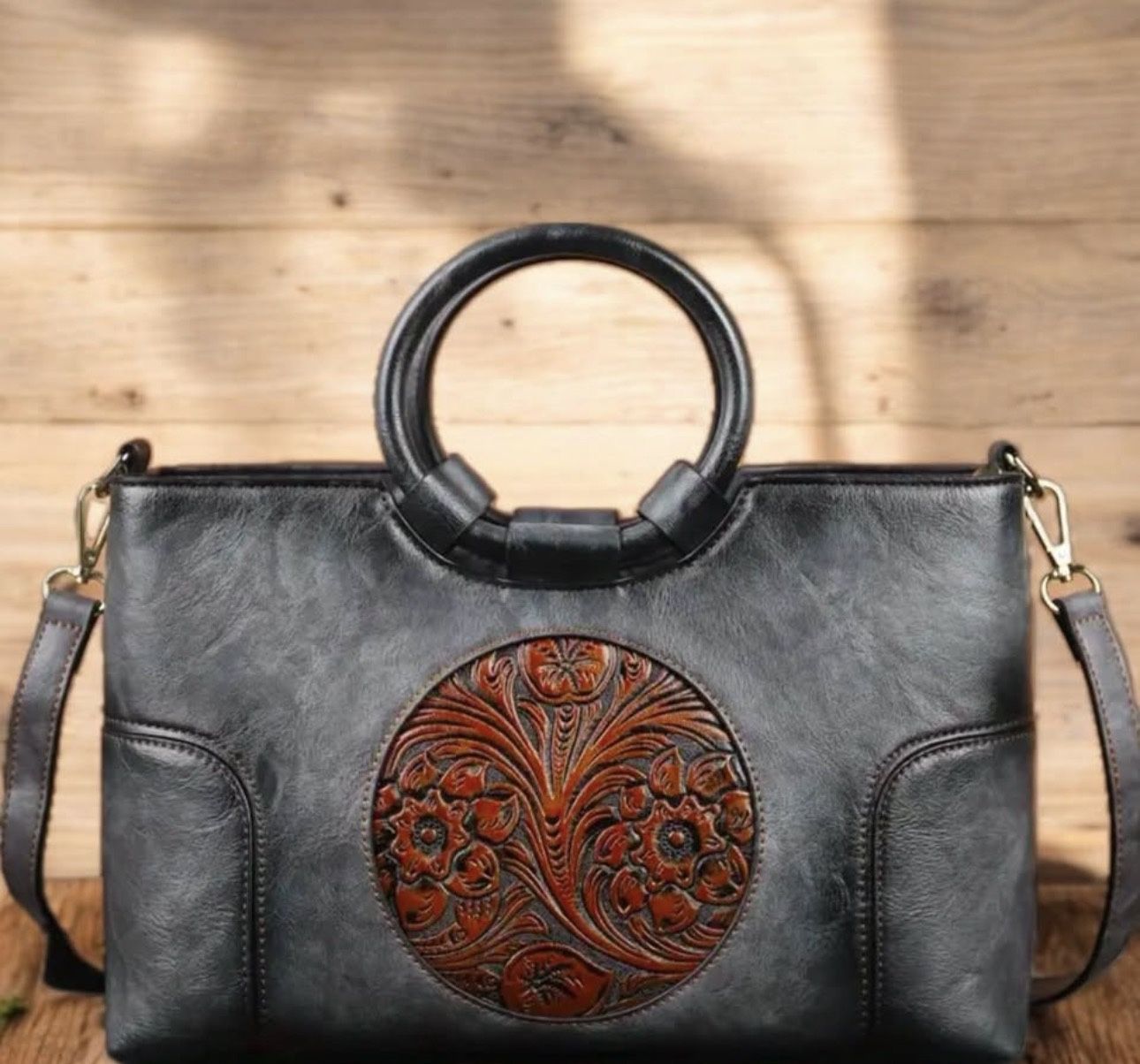 Vintage Leather Purse for Women Clutch Satchel Top-Handle Tote Bag Embossed Totem Shoulder Handbags