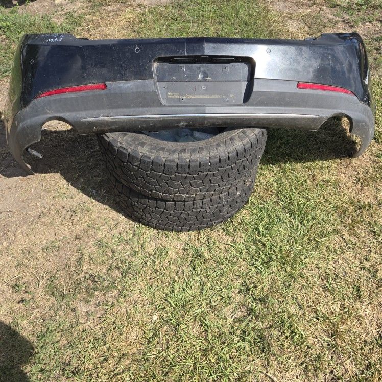 Damaged OEM 2013 to 2016 Lincoln MKS Rear Bumper w/ Sensors, Wire Harness, Lower Valance, foam impact bar, reflectors, chrome trim, & license plate lamps. R3R2. 24C9-S.