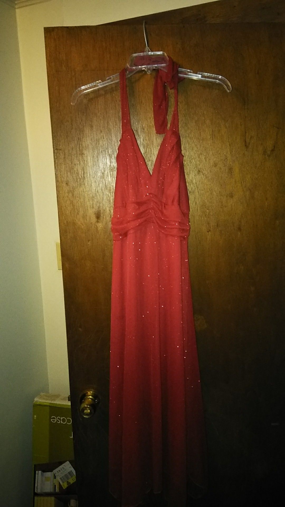 Size 16 red dress with glitter. Backless. Haulter top front.