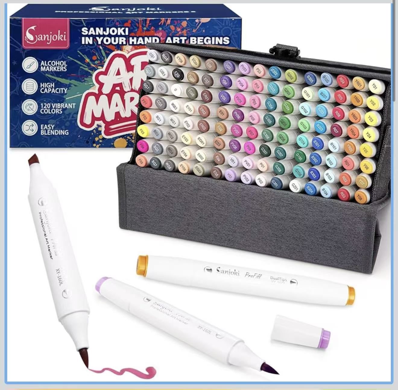 SANJOKI Profill 120 Color Marker Set Brush&Fine Tip Bold Bigger Ink Max Capacity Built for Creators Artist Adults Coloring Illustration