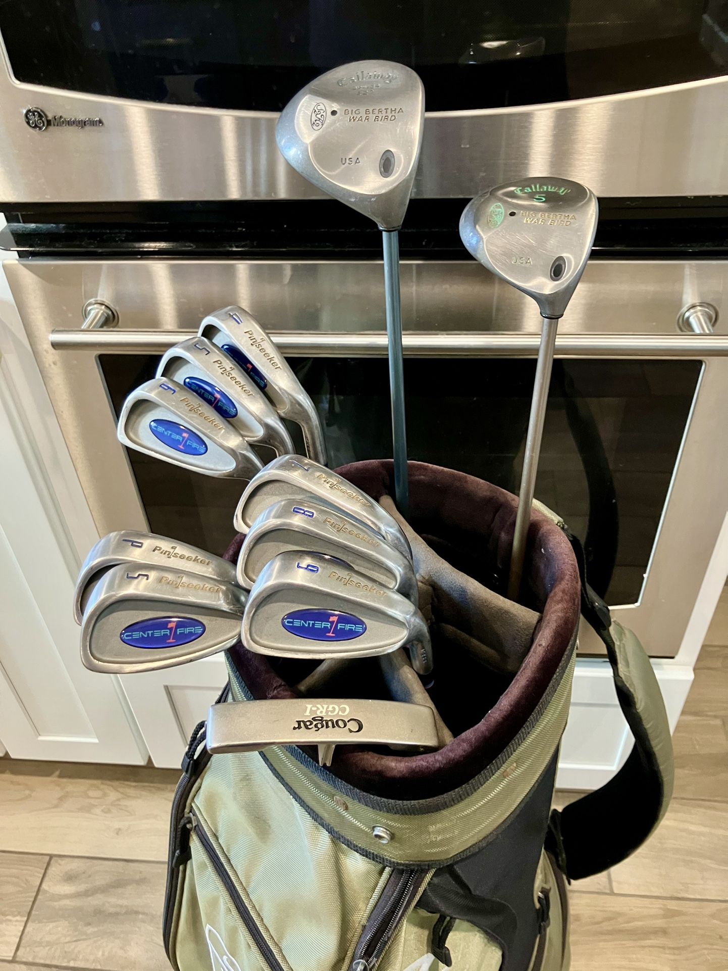 Excellent condition. Ladies golf clubs set. Comes with everything in pics. Let me know if you’re interested. Thanks for looking and make it a great day. TaylorMade Callaway Ping Mizuno Cleveland Titleist Nike Adams XXIO PXG Scotty Cameron cobra Srixon Honma driver fairway wood hybrids irons wedges chipper putter golf balls golf bag golf cart golf clubs set