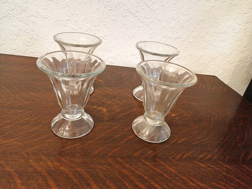 Set of 4 Vintage Dessert Glasses Sundae Soda Fountain Christmas Gift Ice Cream Footed 5" tall, excellent condition no chips or cracks.