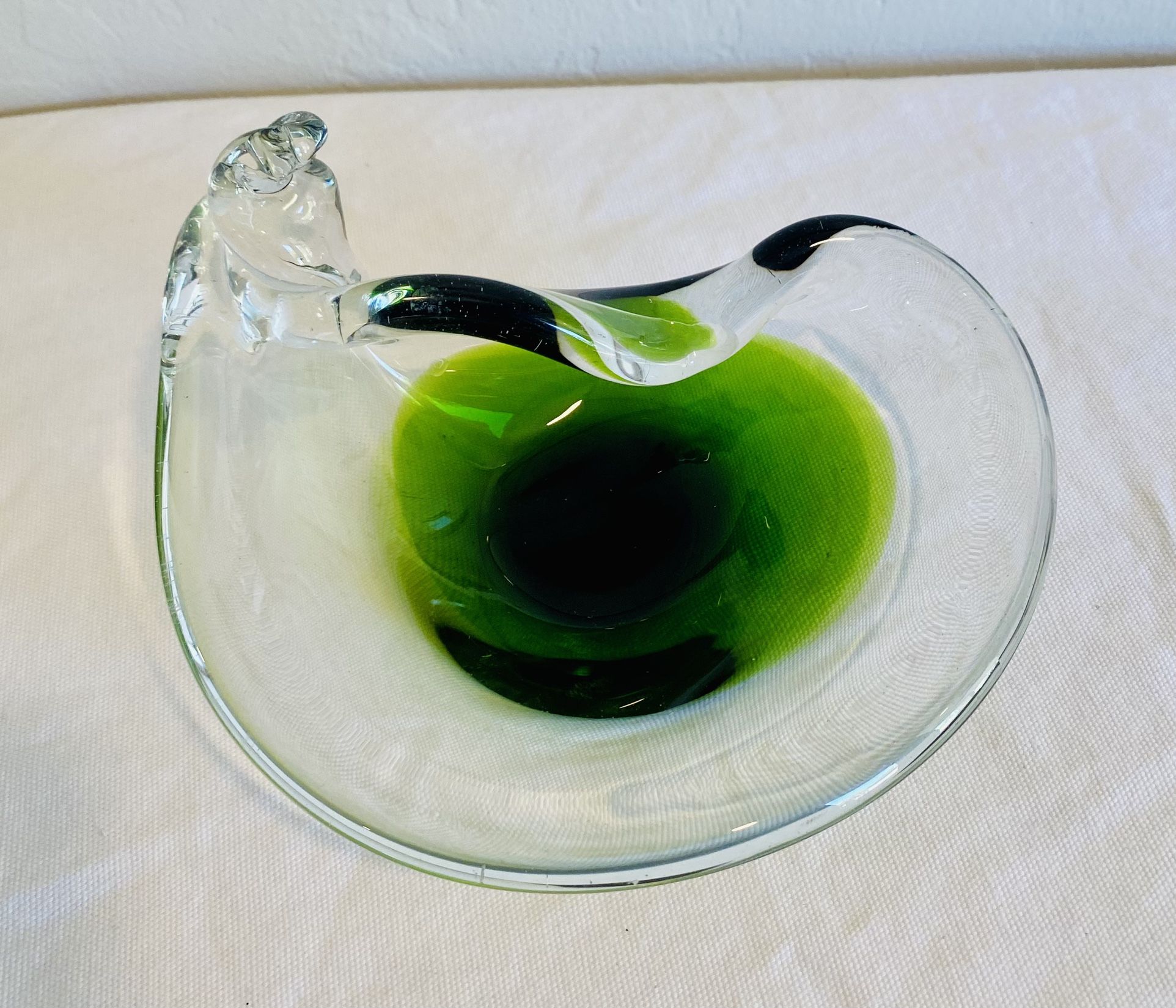 on internal inclusion pictured 7.5” x 6” x 4” tall vintage retro collectible mid century modern mcm art glass colored glass ashtray nautical beach shell bowl