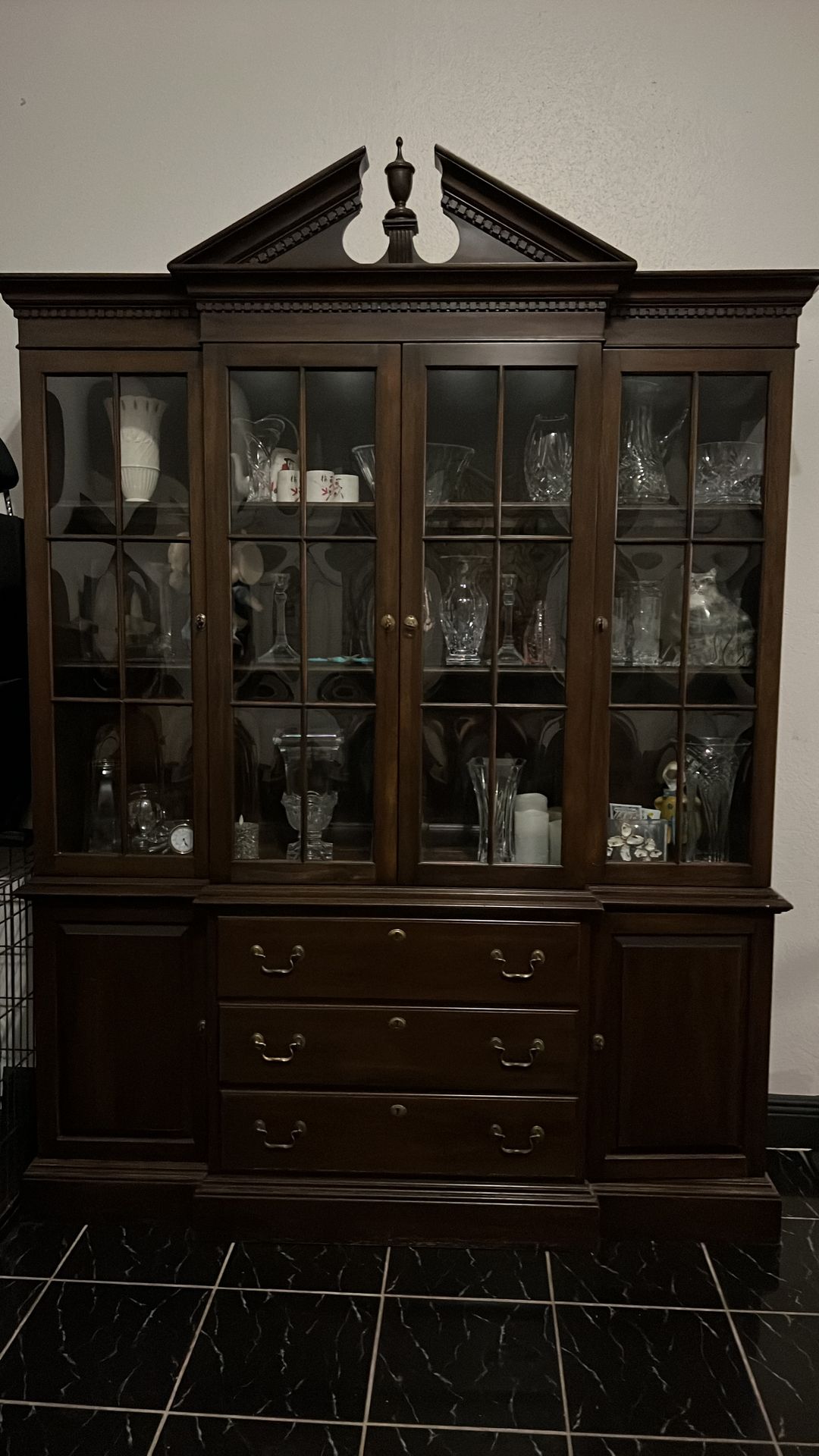 Ethan Allen Legacy China Cabinet, likely crafted from cherry or mahogany in a Georgian or Federal style
