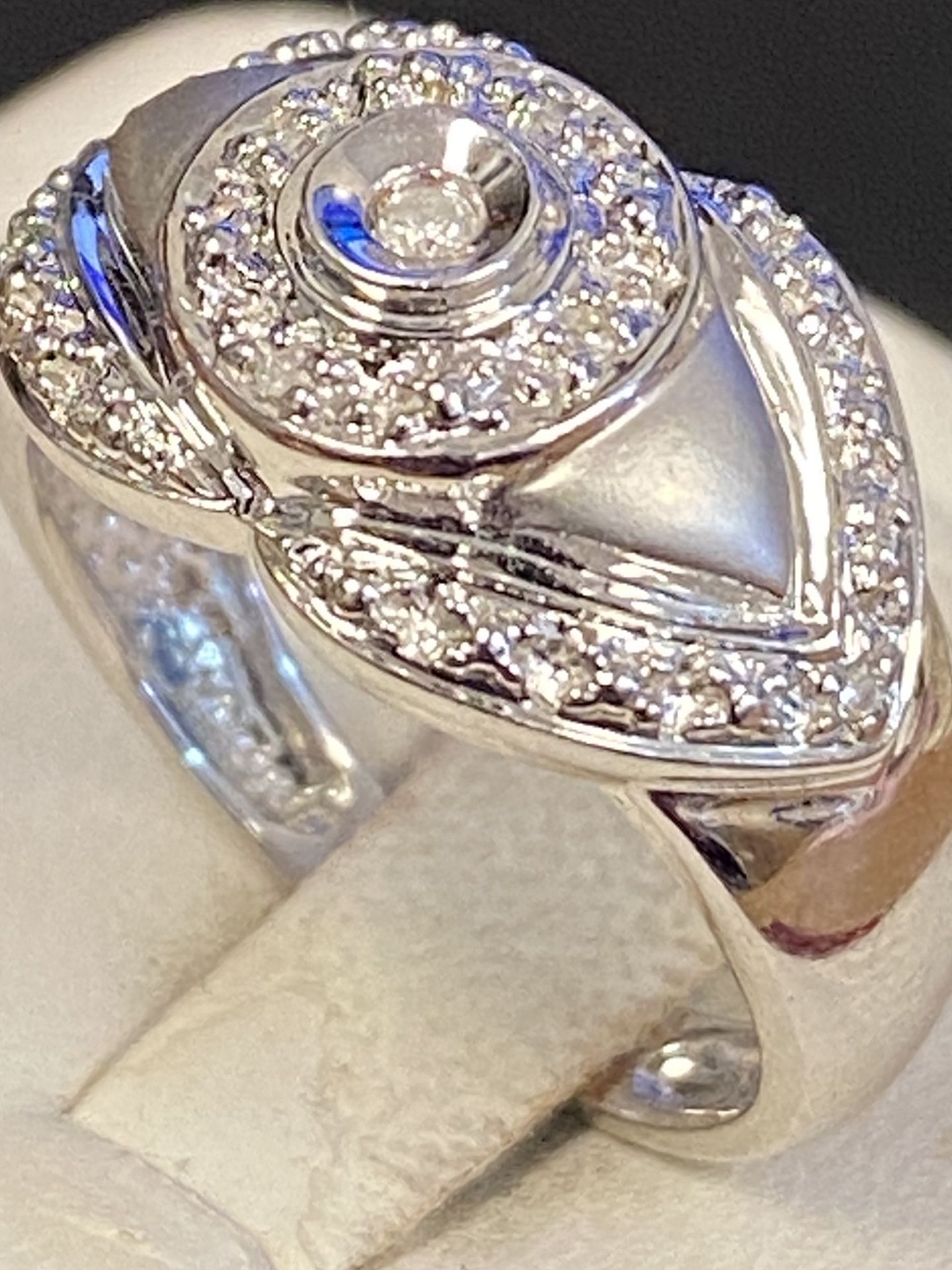 4.9 grams of 14 K white gold & genuine diamond lady’s ring , all other details are in pictures posted, price is $395 , Firm on the price) , I have a pair of earrings to match this ring foe $600 , I posted of picture of it , ask me about PayPal payment method and shipping service