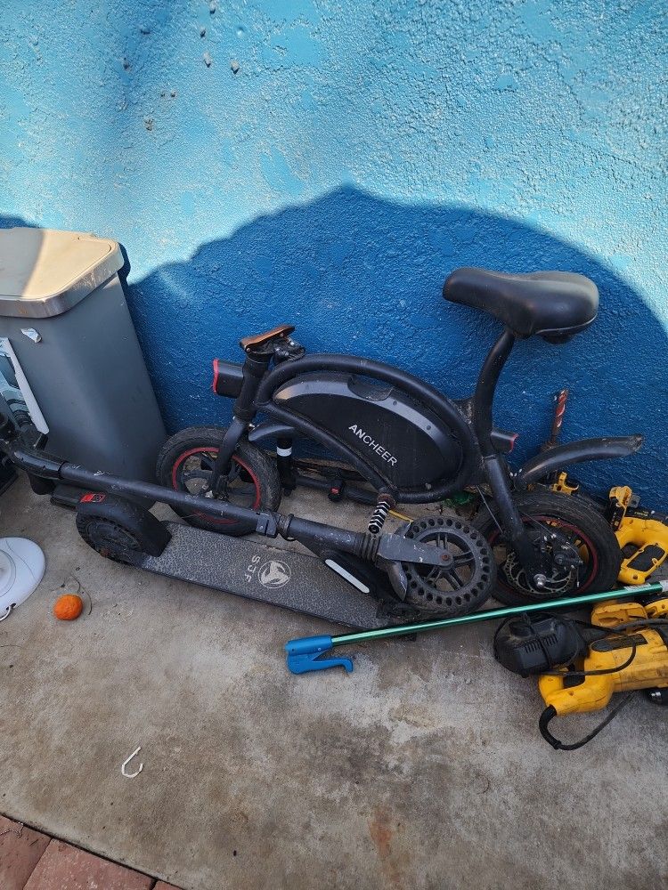 Bicycle needs to fix the tire I don't have the chargeres $150 for both I just have them in my garage I just only used them for couple times. They were New when I got them.