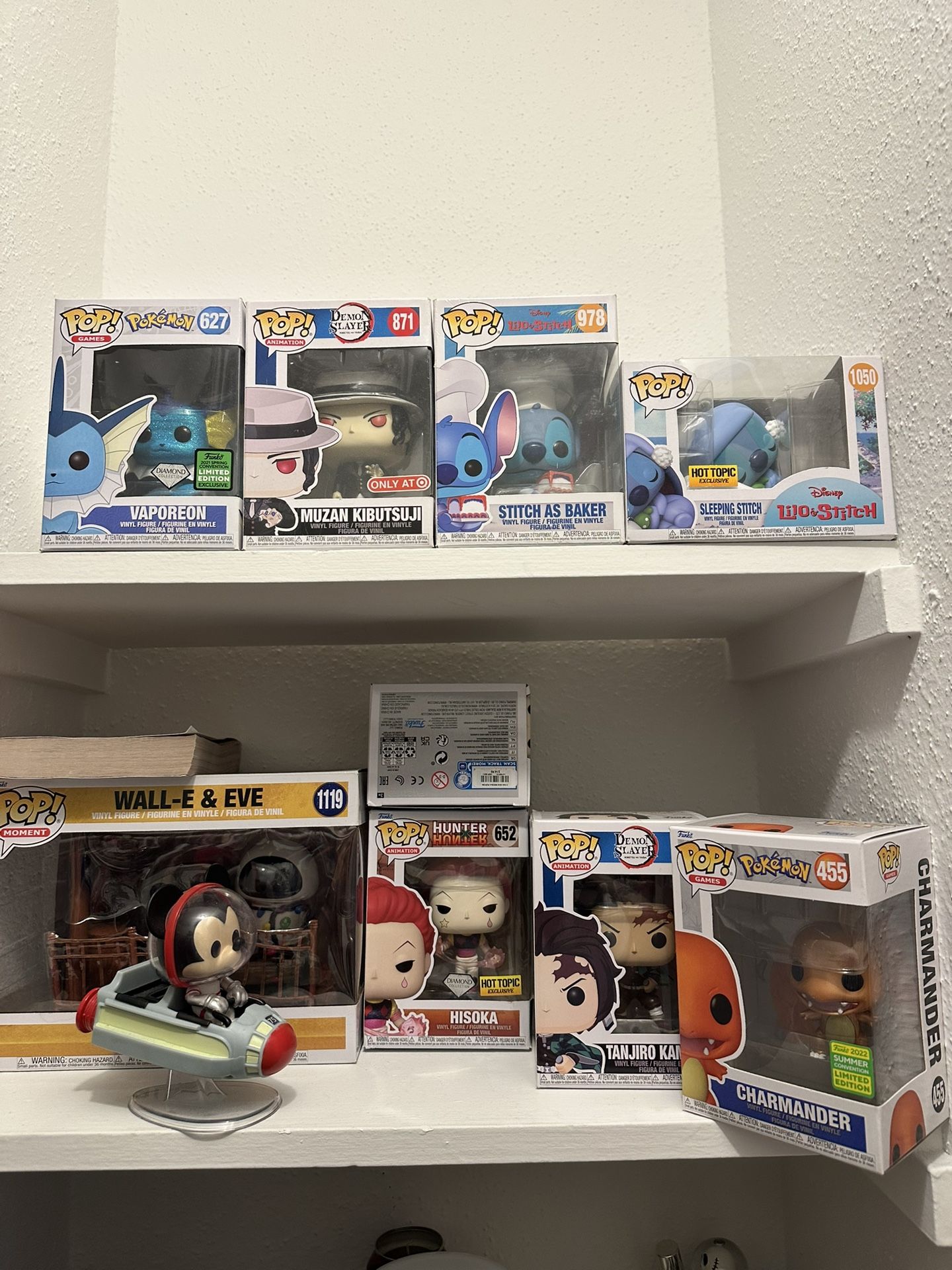 I’m open to any offers. Prices are NOT firm They are all super well kept. Hisoka ( I have 2 of those ) $12 - Sleeping Stitch $14 - Muzan Kibutsuji $14.00 - Vaporeon (Spring Convention) Diamond Glitter) $90 - Charmander (Spring Convention) (Diamond Glitter) $40 - Stitch as Baker $16