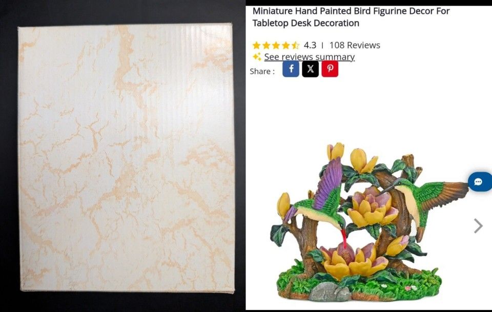 NEVER USED. Hand Painted Bird Figurine Decor, Resin Material