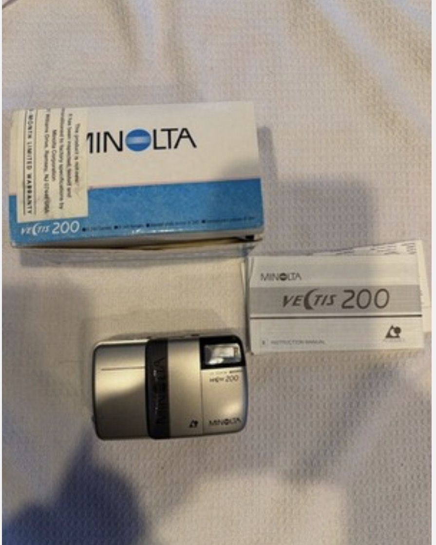 The Minolta Vectis 200 APS Point & Shoot Film Camera is a compact and user-friendly camera designed for film photography enthusiasts. With its automatic point and shoot functionality, users can easily capture high-quality images without the need for manual settings. The camera uses APS film, providing a higher resolution and sharper images compared to other film formats. The Minolta brand is known for its reliable and durable cameras, making the Vectis 200 a trusted choice for capturing memories on film.